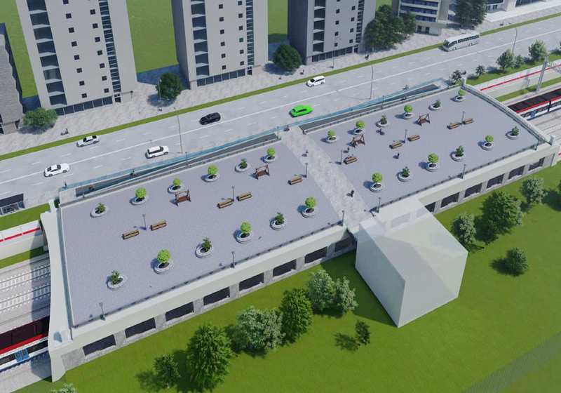 Изготовленный из бетона, он оградит сплошной крышей жителей всех этажей от шума, а заодно послужит большим и широким переходом с Бутырского Вала на Ямское Поле. Более того, крышу планируют сделать эксплуатируемой — разместить на ней автостоянку (пути пролегают в овраге, соответственно, крыша будет на уровне проезжей части Бутырского Вала) или же торговые павильоны. Но Хараидзе предлагает ее озеленить и сделать пешеходную прогулочную зону (получится нечто вроде маленького аналога нью-йоркского Хай-Лайна, знаменитого «парка на опорах»). «Предлагается даже обыграть историческую архитектуру Тверской Заставы с коваными бронзовыми решетками и башенками», — пишет Хараидзе. При этом каркас не будет сплошным — накрывать железную дорогу он будет только в тех местах, где жилые дома стоят близко к путям МЦД.