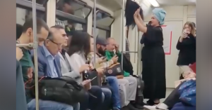 В вагоне метро женщина в халате и с полотенцем на голове стала сушить одежду на поручнях