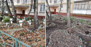 Судьба «скверика ужасов» на днях решилась окончательно: соседи, которым за зиму окончательно надоели «надгробные» балясины, ликвидировали его. Запись об этом появилась сегодня в той же группе. «Суммарно вывезли около тонны строительного и бытового мусора», — написал Тим Новицкий, инициатор мероприятия.