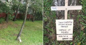 На улице Карамзина неизвестные установили у подножия березы самодельный деревянный крест. К нему приставлена табличка с надписью от руки: «Здесь находится братская могила голубей, умерших от МКАДа. Берегите экологию». Об этом сообщает районный телеграм-канал «М125».