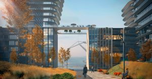 «Парящий уровень набережной будет образован за счет воздушных мостов, перекинутых между футуристичными башнями бионических форм. Образно такое решение можно назвать горизонтальным небоскребом. На мостах с прозрачными стеклянными обрамлениями будут созданы зеленые променады с замечательным видом на Москву-реку, которая в этой части столицы самая широкая и живописная», — рассказывает Дмитрий Старостин, управляющий партнер компании-застройщика, которая вложит в парящую набережную больше 2 млрд рублей.
