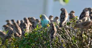 Домашний волнистый попугай прибивается к стае воробьев не впервые. Такой же случай практически десятилетней давности описывают в Ровенской области Украины. Местные жители стали замечать в воробьиной стае какое-то яркое пятно: там беглец был ярко-зеленого цвета.