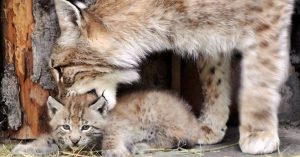 Сначала рысь не подпускала к детям посторонних, даже родственников. У десятилетних Гайки и Чипа это третий помет (первым рысятам уже два года), и вся семья живет в одном вольере — в «Кошачьем ряду» на старой территории Московского зоопарка. Конечно, старшим было любопытно посмотреть на маленьких рысят (как и всем москвичам), но бдительная Гайка регулярно переносила котят из одного укрытия в другое.