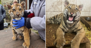 Все началось несколько месяцев назад, когда москвич Илья Вершинин передал в Центр передержки диких животных замученного бенгальского тигренка.Того, что произошло на самом деле, мы, наверное, не узнаем никогда: все источники говорят разное. Точно известно одно — тигренок попал к специалистам в ужасном состоянии и полностью истощенным, но благодаря лечению и диете смог выкарабкаться. Телеграм-канал «Говорит и показывает Москва» сегодня опубликовал фотографии, по которым видно, что животное в порядке. Сейчас для него готовят летний вольер, судьба решается.