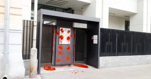 Месяц назад красной краской облили посольство Чехии на улице Юлиуса Фучика — тогда вандалы облили «кровью» стены здания дипведомства, а на входной турникет повесили флаг США, который также был измазан красной краской.