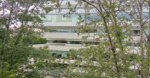 Здание из белого камня и стекла с алюминиевой отделкой, которая меняет цвет в зависимости от погоды и освещения, выглядит как сдвинутые тектонические плиты. Причем внутри все так же красиво и необычно, как и снаружи: минимализм деталей, свободное расположение лестниц со светодиодной подсветкой, все в черно-белом цвете. Там на первом этаже очень неплохая столовая, мы туда ходим иногда, и цены, как ни странно, приемлемые.