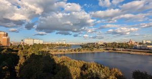 Каждое утро в любое время года, стоя на этом балконе, становишься свидетелем необычайно красивых метаморфоз неба, простирающихся над водной гладью нашего уютного Даниловского района.