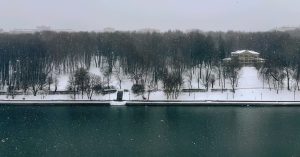 А из домика графа Орлова открывается, соответственно, вид на мой дом на Фрунзенской набережной. Вид из моего окна радует глаз в любую погоду — и в снег, и в дождь, и особенно, конечно, в солнечные дни.