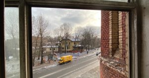 Из этого окна виден особняк купца Носова — редчайший, построенный в 1903 году образец деревянного модерна Москвы с круглой верандой, резными вставками и ограждениями. Для его постройки фабрикант Василий Носов пригласил архитектора Льва Кекушева. Носов хотел, чтобы дом был практичным, уютным и не слишком большим. Кекушев представил эскизы дома в популярном тогда стиле бельгийский модерн.