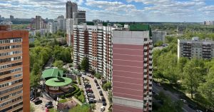 Наш дом находится на улице Глаголева, 19. Вид выходит справа на улицу Маршала Тухачевского, но дом находится в очень странном месте, на возвышенности, и из-за этого внутри дома «сбиты» этажи, то есть, если это второй этаж, на кнопке лифта написано, что он третий. Можно зайти на любой этаж, например, там будет написано 21, а на кнопке лифта — 22. Вот с этим проблема. У меня, получается, 18-й этаж по кнопке лифта, но по факту он 17-й. И это очень сильно путает всех. У меня в этом доме две квартиры. У мамы квартира на третьем этаже, то есть на втором. Там раньше жила моя бабушка, и я у нее очень часто бывала и даже жила там какое-то время, ходила отсюда в школу. Школа совсем недалеко от дома находится, я ходила пешком через парк.