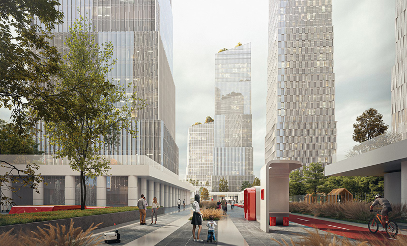 Судя по прежним визуализациям, офисный блок у дороги должен сыграть роль щита от шума, а за ним уже начнется жилье. На тех рендерах при желании можно было разглядеть даже нечто вроде стадиона, но об этом в свежих параметрах ни слова.