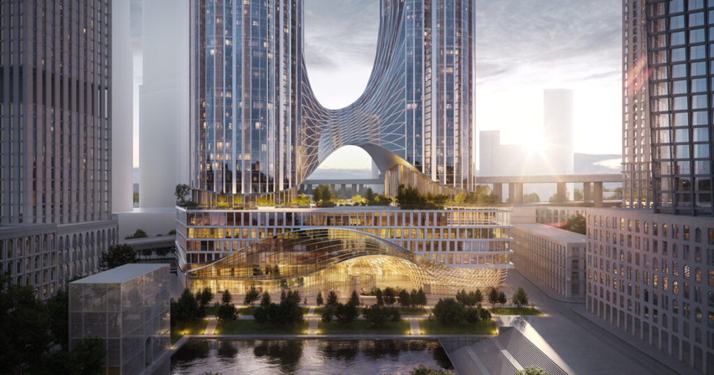 Построят ЖК в виде двух труб рядом с «Москва-Сити» — в будущем районе «Сити-2» во 2-м Красногвардейском проезде. Речь о жилых башнях, объединенных стилобатом. Самая высокая — 384 метра, до 96 этажей. Вторая башня чуть ниже — всего 83 этажа. Под землей запланировано еще пять уровней — под паркинг и технические помещения.