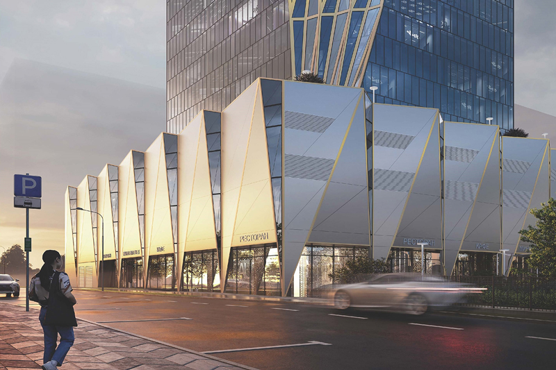 «Фасады выполнят в витражной системе остекления с применением алюминиевого профиля. За счет объемных элементов создастся образ вырастающего из земли кристалла. Проектом также предусмотрена архитектурная подсветка акцентных элементов фасада», — отметил Кузнецов.