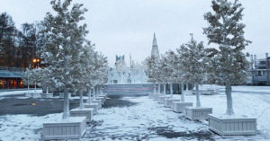 Вместо катка в парке установили белые искусственные деревья. Кто-то говорит «сказка», а кто-то — «Припять после аварии». Видео и фото новой инсталляции опубликовали в фейсбуке.