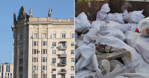 «Вот так проходит “реставрация” скульптур на крыше дома по Смоленской набережной, 2а. Рабочие с гордостью сказали, что все скульптуры разбиты и их по частям спускают в контейнер. Их заменят на новые! Хорошо, что я весной успел сфотографировать на крыше оригинальные скульптуры», — написал Феклистов в своих соцсетях.