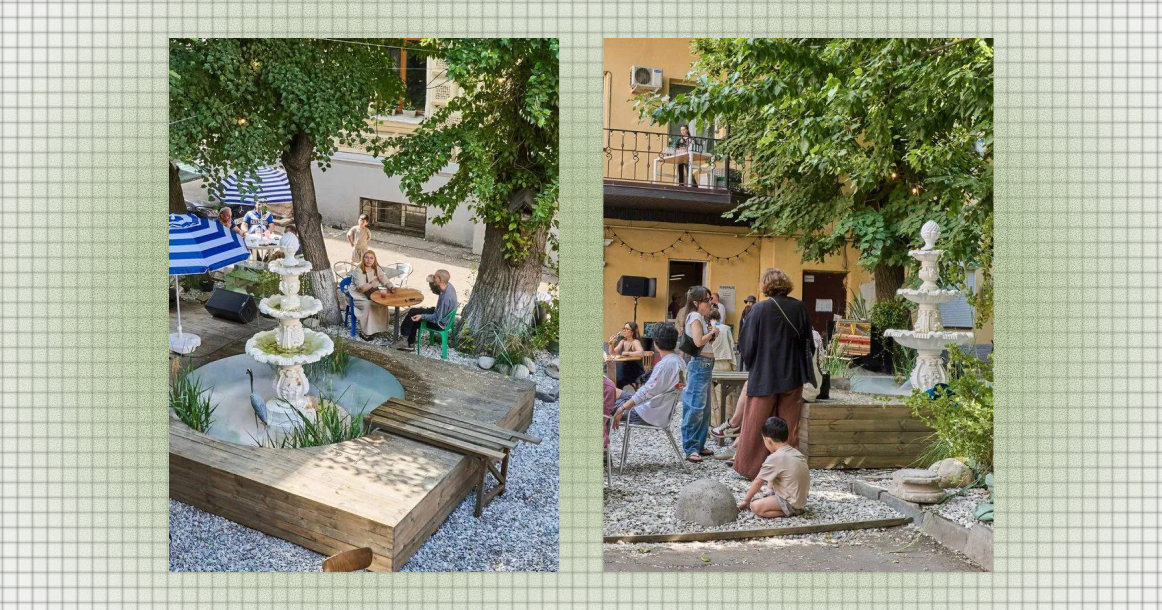 Здесь нет привычного зала, барной стойки или дизайнерских лампочек под потолком. Только одно аккуратное окно в европейском стиле, из которого подают кофе, выпечку и сэндвичи, а пить и есть предлагают прямо во дворе, на пластиковых стульях у фонтана.