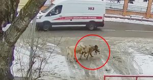 Все это произошло на глазах водителя машины скорой помощи и женщины (возможно, хозяйки), которая побежала за четвероногими похитителями. Мужчина немного сдал назад и стал сигналить. Из-за этого собаки напугались и бросили малыша, а дама унесла его оттуда на руках.