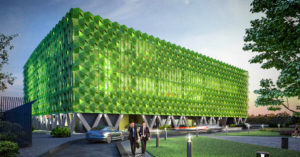 На самом деле, проект действительно удивляет — во всех смыслах — и индивидуальности городской придаст даже слишком много. Нет, это действительно красиво и здорово сделано, но вот насчет гармонии с окружающей средой можно поспорить — скорее, он, наоборот, станет памятником архитектурной смелости и удали. Из проектных иллюстраций следует, что расположится этот необыкновенный объект ярко-зеленого цвета с ребристыми панелями среди самой что ни на есть типовой застройки; предусмотрена также архитектурная подсветка объекта. Но есть и полезный эффект — аэропорт Внуково совсем рядом с будущей парковкой, можно дойти пешком. Метро там пока, к сожалению, не построили, но уже начали.