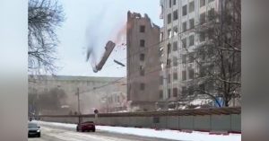 Паблик «Новости Москвы» поделился видео, на которое попал момент, когда от сносимого здания отваливается громадный кусок и эпично летит вниз. Часть кирпичной стены упала на забор и дорогу прямо перед проезжавшей машиной. У водителя красной легковушки, вероятно, вся жизнь пронеслась перед глазами. При этом там ходят люди, на видео попали двое парней, которые успели пройти злополучное место за несколько секунд до обрушения.
