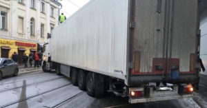 Водитель фуры перекрыл движение на Бауманской улице и потребовал свою зарплату