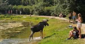 За эти дни у пруда возникло нечто вроде «водяного перемирия» из «Книги джунглей» Киплинга. На одном из видеороликов видно, как лось выходит из воды, не обращая внимания на загорающих буквально в паре метров от него. Отдыхающие на берегу в ответ тоже стараются вести себя тактично, не мешая уставшему от жары животному принимать ванну.