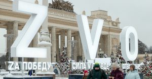 UPD: В соцсетях пишут, что из букв должно было получиться слово ZOV, тогда из нижних фраз складывается осмысленное высказывание «За победу, отважные. Сила в правде», но порядок при установке оказался другим.