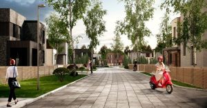 Двухэтажные дома с панорамными окнами, предполагающие индивидуальную планировку, будут отделаны керамическим кирпичом и натуральным деревом.