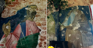 В баре «Эскапист» в Большом Трехсвятительском переулке обнаружили фрески: их фотографии опубликовали в телеграм-канале «Покровка и все мерзости» со словами «Ну дела! В баре найдены такие фрески!». Так что сначала все подумали, что они старинные.