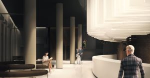 Тем не менее планов много: архитектурное бюро UNK, которое занимается интерьерами в новом филиале, делится подробностями. Помимо главного зала на 650 мест театральное действо станет проходить и в трехуровневом фойе с открытыми лестницами. Его специально проектировали так, чтобы получилась площадка и для экспериментальных постановок, и для выставок. Фойе отделают перфорированными панелями, а стену большого зала украсят ламелями необычной формы и искусственным камнем с интерактивной подсветкой. На стену, говорят, можно будет проектировать изображение.