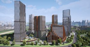 О том, что у торгового центра GoodZone построят жилье, стало известно еще в 2024 году. Сейчас же архитекторы представили концепцию, где предложили возвести два жилых блока с шестью башнями высотой от 27 до 45 этажей и офисное здание в 12 этажей. Торгового центра на рендерах не видно вовсе. Во всяком случае, в его прежнем виде.