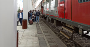 «При стандарте 200 мм от уровня рельса ее высота 0 мм от уровня рельса. И это при том, что платформу строили для “Стрижей”, а для них можно делать 500 мм платформу. В итоге пассажирам приходится на “самом современном вокзале Европы” прыгать со ступенек с чемоданами! Требую уволить бездарных строителей, которые нарушили нормы строительства платформы», — возмущается транспортный блогер Василий Александров в своем телеграм-канале «Василий и трамвайчики».