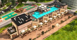 А в Чертаново Южном скоро появится еще одна точка притяжения отдыхающих москвичей — там расположится некое подобие отеля в Турции (только без гостиничных номеров). В четырехэтажном здании организуют и «поражающую своим изобилием зону фудхолла» (с полноценными ресторанами и рынком фермерских продуктов), и просторную зону релакса на крыше с джакузи и огромным 50-метровым бассейном, подогреваемым в холодное время года и освежающим в летнее.