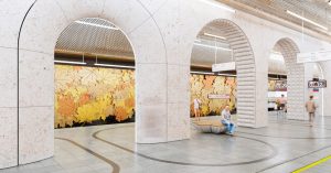 Станция «Кленовый бульвар» Бирюлевской линии — одна из многострадальных в современной истории метро. Изначально над ее визуальным обликом работало знаменитое бюро Zaha Hadid Architects, которое в 2022 году внезапно отказалось от проекта. Потом главный архитектор Москвы Сергей Кузнецов показал несколько вариантов на замену от разных бюро — и ни один из них, как мы видим, не был утвержден. Но вот выбор наконец сделан.