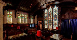 Интерьер «Тайной комнаты» напоминает средневековый: витражи на окнах, сводчатые потолки, массивная деревянная мебель. Это отсылка к «Тайной комнате» из «Гарри Поттера». Правда, в нее можно было попасть через туалет для девочек и там происходили не самые приятные для героев вещи, а тут все привлекательнее — вход через Black Swan, а внутри 200-метровое помещение c пятью отдельными залами.