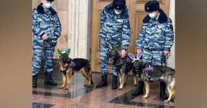 Пользователям в соцсетях праздничный патруль явно пришелся по душе. Они пишут: «Ничего милее вы за сегодня уже не увидите», «На голове чудные заячьи ушки, а под шкурой бьется храброе сердце бойца, любящее и преданное своему вожатому!», «Были собаки, стали собакролики».
