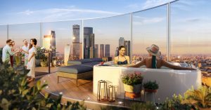 Пространства на крыше почему-то называют пляжами, хотя место, где можно искупаться, там будет фактически одно — джакузи. Еще на крышах пяти небоскребов появятся лежаки и зоны барбекю.