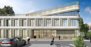 Судя по первым визуализациям, центр будет небольшим, но весьма симпатичным — с плавными линиями фасадов, закругленными углами и просторными окнами. У здания будет три этажа. Окна дома чередуются с четким ритмом белых вертикальных опор и простенков, образующих лаконичную решетку.