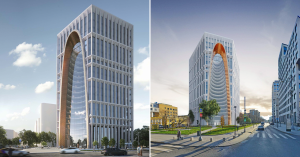 Вот такой офисный центр с «золотым порталом» построят у Дорогомиловского рынка
