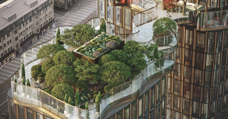 Вот такой открытый сад появится на крыше высотки с парящим мостом на «Новослободской»