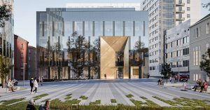 Вот такой «зеркальный корпус» с золотой аркой появится у Бауманки
