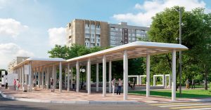 Как это будет выглядеть? Сейчас в разных частях города от выходов метро до автобусных остановок устанавливают специальные навесы, чтобы в непогоду пассажиры могли пересаживаться с «сухими ногами». Что-то похожее решили осуществить и тут, но не просто поставить навесы, лавочки, сделать удобную навигацию, а создать совмещенные зоны ожидания и отдыха. Рядом с автобусной остановкой разобьют цветники и установят парковые качели.