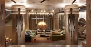 «Те же три уровня, включая террасу, в меню средиземноморская кухня, а в темном интерьере из дерева и металла еще и масса арт-объектов», — пишет телеграм-канал. Некоторые арт-объекты можно разглядеть и на рендерах.