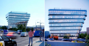Главный архитектор Сергей Кузнецов рассказывает: «Москомархитектура согласовала очень интересный проект офисного центра, разработанный бюро ADM. Фасадные решения представляют собой неповторимый, деликатно размещенный объем с выразительной пластикой. Закрученный по спирали, он напоминает смерч. Формообразование за счет поворота каждого последующего этажа позволяет увеличить поэтажную площадь и создает отличные видовые характеристики».