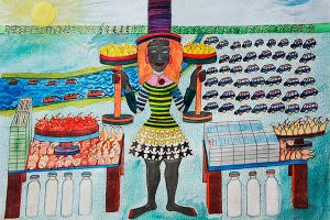 Его картины, стилистике которых более всего подойдет определение «наивное искусство», покупает коллекционер Александра Мигунова-Тиханюк. Она привезла в культурный центр 90 его лучших работ, которые отобрала сама. Концепцию выставки она придумала вместе с неким куратором Андреем, фамилия которого не называется. Интересно, что они были знакомы около трех лет, но работали вместе впервые. После окончания выставки работы к коллекционеру не вернулись.