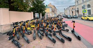 Неправильная парковка СИМов — проблема для Москвы конечно, тоже актуальная, но вряд ли здесь дело в ней. Флешмоб самокатчиков — вариант тоже маловероятный. В комментариях строят догадки: «Студенты консерватории приехали на учебу?» Но, скорее всего, самокаты просто временно свезли в одно место и скоро их уберут.