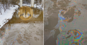 Местные жители уже не первый раз замечают на поверхности реки масляные пятна.