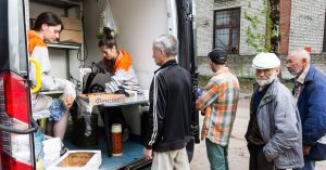 «Ночной автобус» — это проект помощи бездомным, запущенный в Москве в 2020 году. По вечерам автобус ездит по Москве и кормит бездомных, раздает им средства гигиены, одежду и лекарства, консультирует по медицинским вопросам. С продуктами и вещами помогают разные партнеры, крупные и не очень, а также волонтеры.