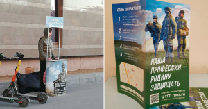 Там раздают флаеры, в которых рассказывается о преимуществах службы на СВО.