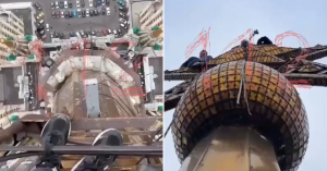 Задержали 20 руферов, которые залезли на шпиль высотки на Кудринской площади