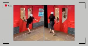 Все происходящее снимали на видео знакомые девочки, которые явно одобряли ее действия. Молоток, кстати, аварийный — тот самый, что располагается в вагоне поезда.